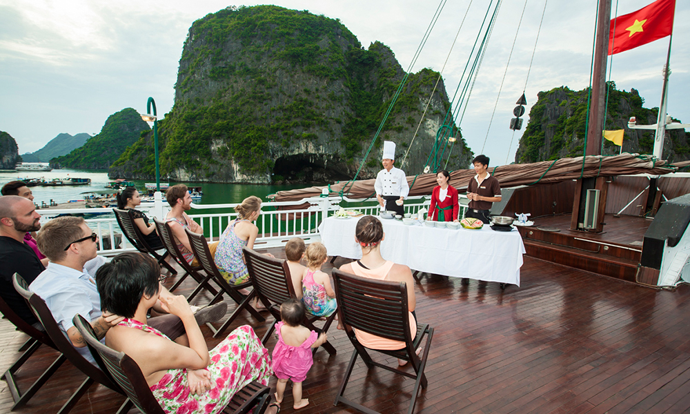 05:30pm: Cooking demonstration with traditional Vietnamese food on the sundeck (or in the restaurant if weather does not allow).