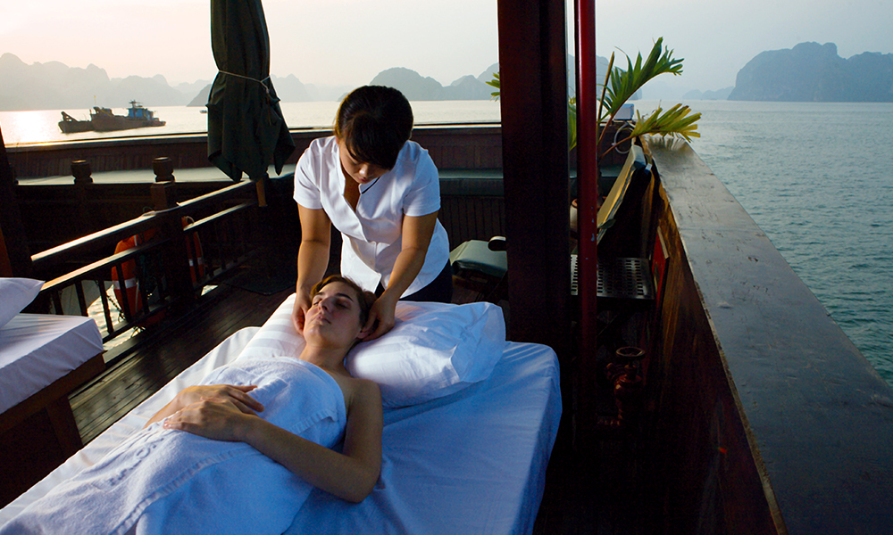 04:30: Return to main boat for swimming around the area, relaxing on sundeck or indulging yourself with spa service.