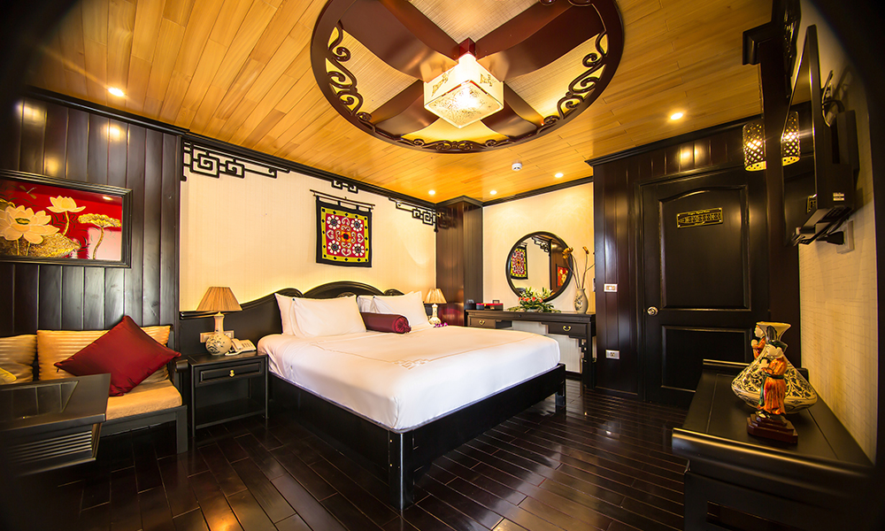 20:30: Free time for relaxing, communicating with the staffs, evening activities (watching movie listening to music, squid fishing…). Overnight on Bai Tu Long Bay.