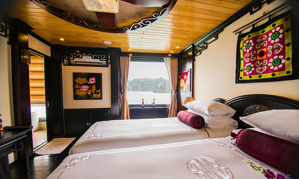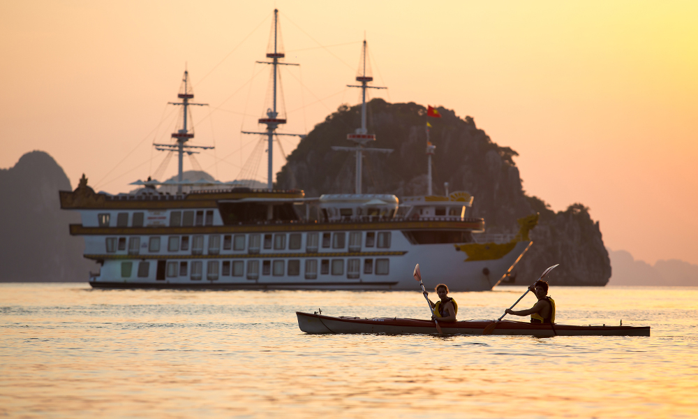 15:00 – 17:00: Cruise to Vung Dang – Cong Dam area: Swim or relax on a white sandy beach; Go kayaking through the mystery Karst Mountains in Vung Dang area.