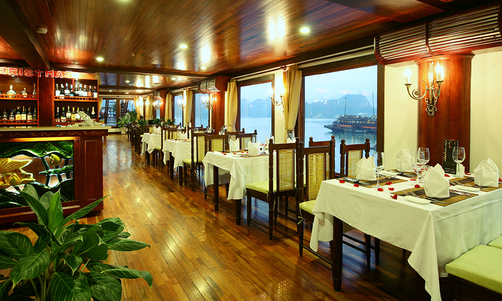 Indochina Sails boarding time is at 12:15 pm. Upon boarding guests are greeted with a welcome drink and gather in the dining room for a comprehensive safety and boat orientation briefing followed by itinerary details.