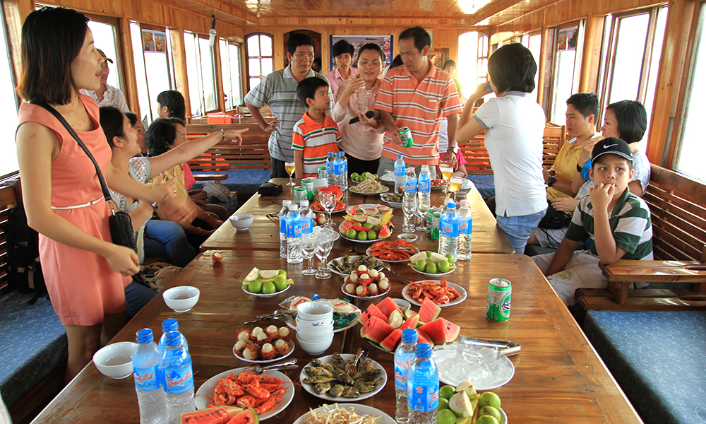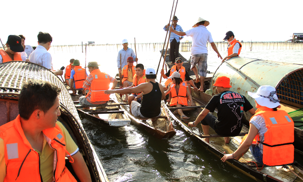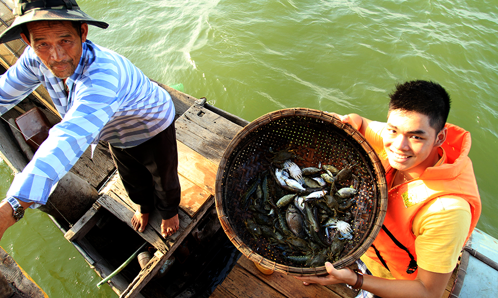 Après 30 minutes de croisière, Après 30 minutes de croisière, vous passerez sur un bateau sampan pour rejoindre les pêcheurs locaux de cette région vous en apprendrez plus sur leur mode de vie et la façon dont ils gagnent leur vie. Tandis que vous dériverez dans les eaux peu profondes du lagon, vous aurez la chance d'apprendre à pêcher avec les gens du coin.