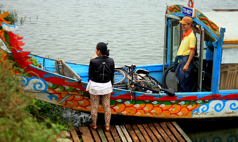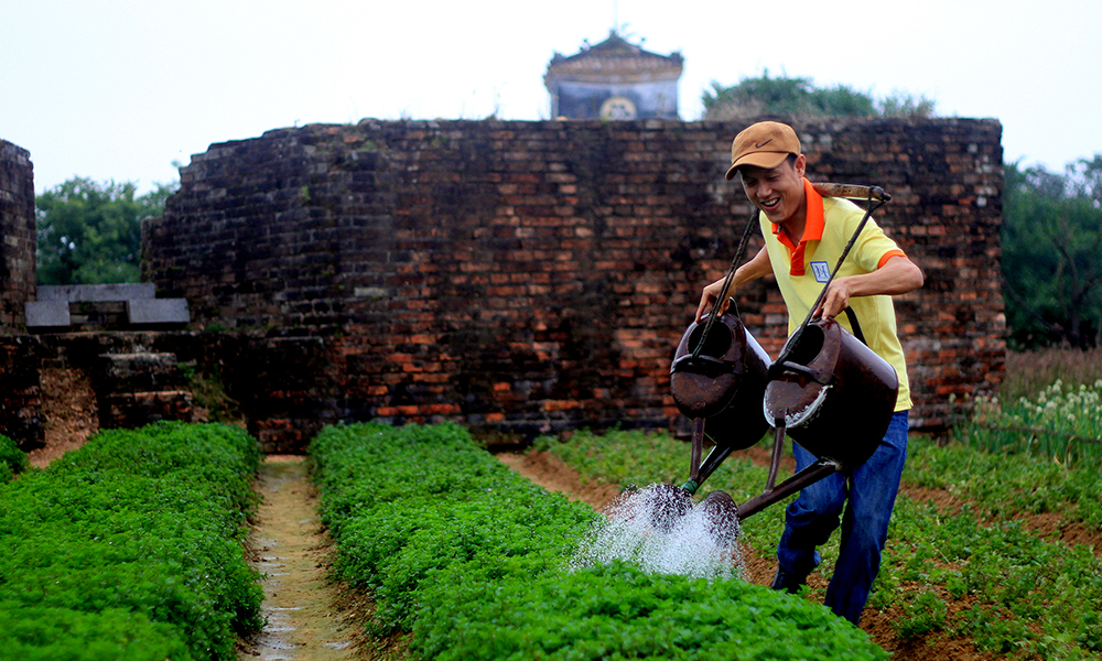 You land by the lovely Then Cafe that you will return to later in your tour to enjoy a rest and a drink. But for now, it is time to set out on a short bicycle tour of this interesting part of town. Enjoy the quiet roads imagining times gone by when this pace of life was the norm in this now busy town of Hue. Along the way, you can enjoy the flower gardens nurtured by locals, visit the house where the family make the Votive items that are created to burn in respect of deceased relatives. A little further on, you will meet the local gardeners who lease out space adjacent to the Citadel walls to tend their market gardens, the produce from which they then sell at local markets. And of course, if you choose to, you can always offer a helping hand in watering crops or turning over soil.