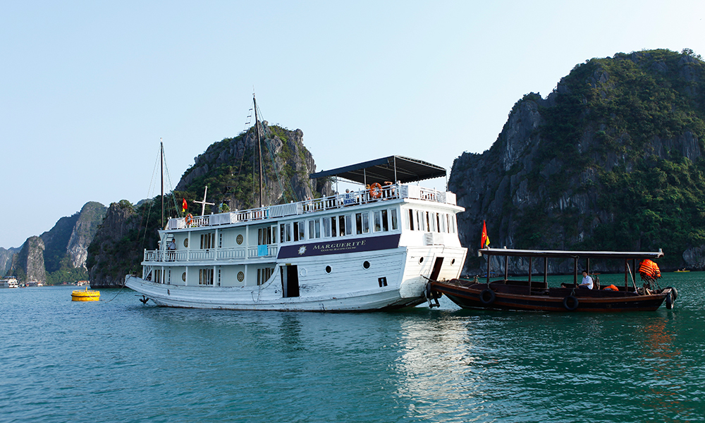 - 12:15 Transfer by tender to the Marguerite Junk boat – enjoy Welcome Drink. Receive Junk Facilities and Cruise Instruction as well as Cruise Briefing before check in to cabins and begin cruise Off the Beaten Track.