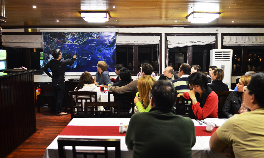 - 20:30 Evening activities include: film entertainment in the dining room, board games and playing cards are available, squid fishing from the boat with our crew.