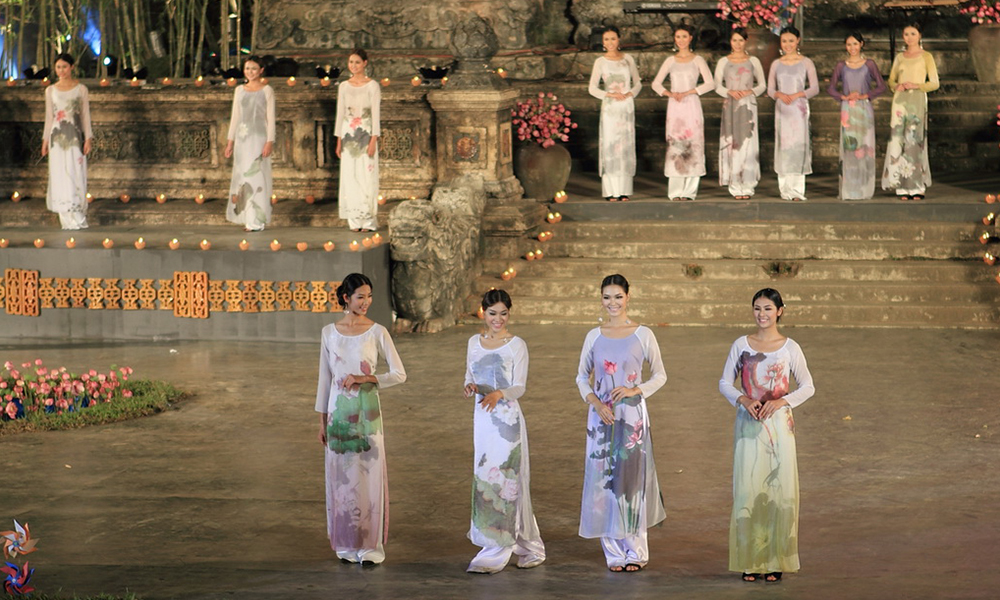 Evening,  you can participate in the “Ao dai” Grand Shows  in April 30th 2016 at the Monument aux Morts (Bia Quoc Hoc) and the entrance ticket is sold at our office 18 Duong Van An Street, Hue city.