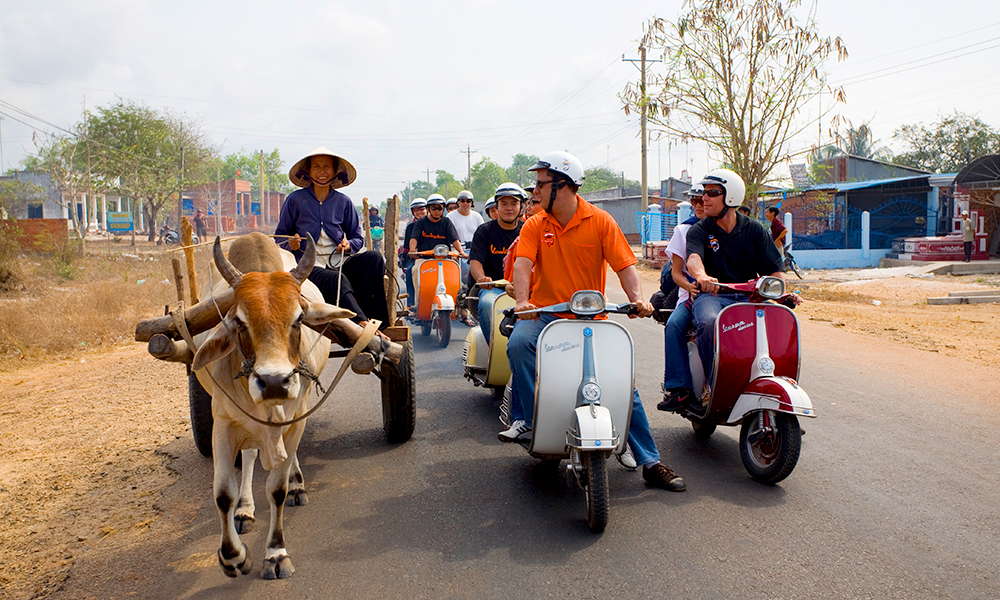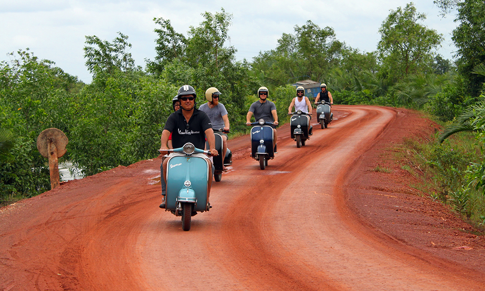 This tour requires an adventurous spirit and a strong backside. Experienced and skilled riders can drive their own Vespa or automatic scooter on this Mekong Delta day tour, or you sit back & relax on the back of a restored vintage Vespa while we take you through the beautiful scenery.