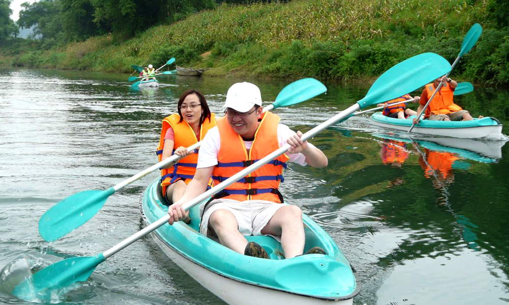 Start the day with breakfast. After breakfast, we go kayaking on the Chay River to the Dark Cave and Nuoc Mooc Springs. After that, we take a short trek through the Park with a local guide, where you can learn about the codes of a conservation environment. After a picnic for lunch on one of the paths in the forest, enjoy swimming at Nuoc Mooc Springs before returning to the bus. Our next stop is at the dock to board a boat to cruise on the Son River to visit the World Heritage Site of the Phong Nha Cave. Here you can explore the breathtaking beauty of the caves.