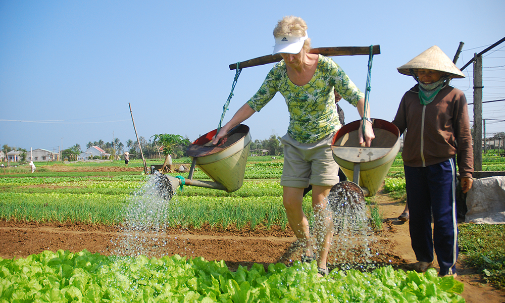 This tour offers an experience of living and working with the local people at the Tra Que vegetable village. A short stroll will take you around the vegetable garden and then you can join in with the farmers in preparing the land and fertilizing it with seaweed from the local lake. The experience includes raking the ground, sowing, watering, and picking the vegetables as well many other gardening activities.
