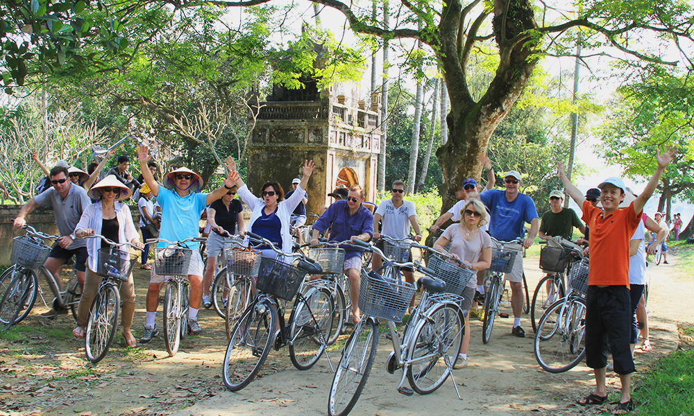 After your stay at Thanh Tien, we will continue on our cycle ride through the local paddy fields and pastures where you can enjoy the beauty of the local scenery and see locals going about their daily activities of wet rice cultivation and flower gardening.