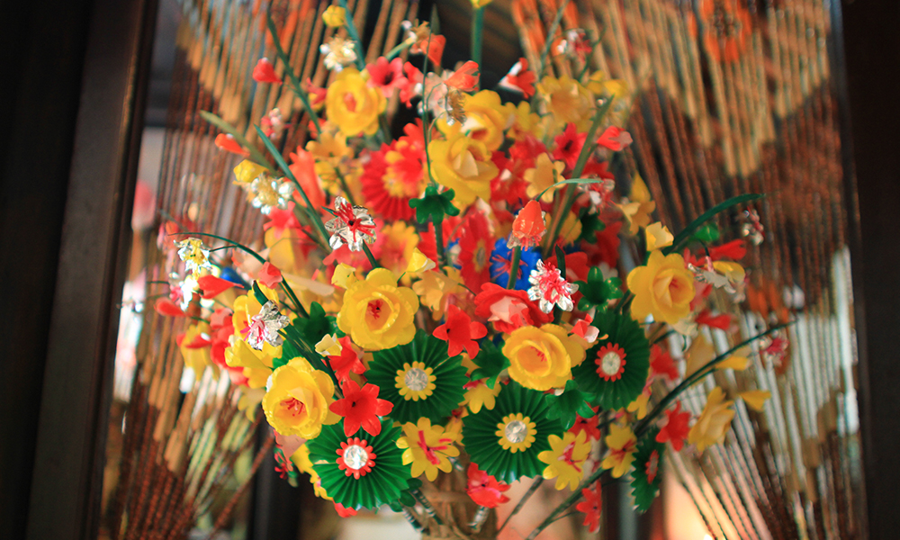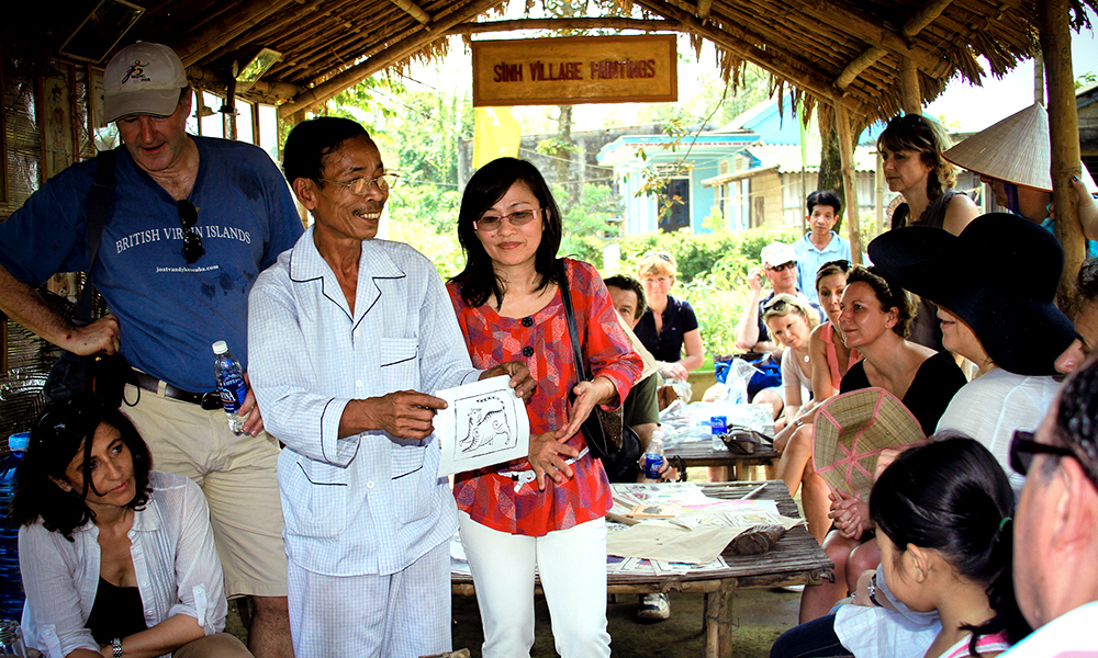 Hundreds of years ago, most of the villagers around Thanh Tien and Sinh earned their money producing the folk paintings and paper flowers that are used mainly for worship. These local products expressed the mystical, nature-based beliefs of the ancient Vietnamese. The methods of producing these products were taught from one generation to the next to keep the craft alive. Sadly, these unique handicrafts are being threatened due to the burden of economic development and the modest income they bring in for the artisans.