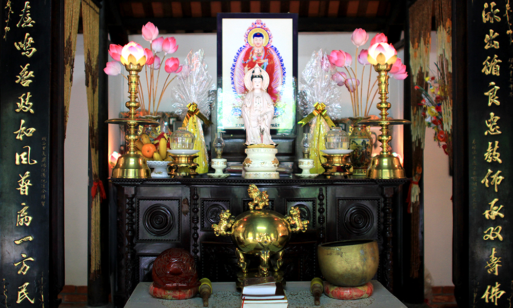 Today, the pictures and the flowers are still used for worship but they are also available to purchase by tourists to take home with them as a souvenir of their trip to Hue.